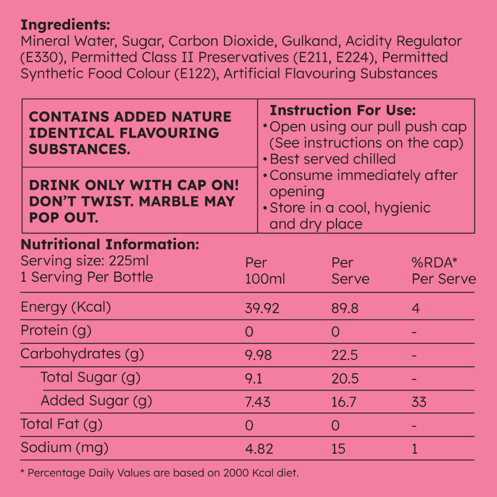 It opens with that unmistakable marble pop, releases a soft rose fragrance, comes with actual rose petals and finishes refreshingly crisp — the kind you don’t sip politely, you share, steal, and go back for again.